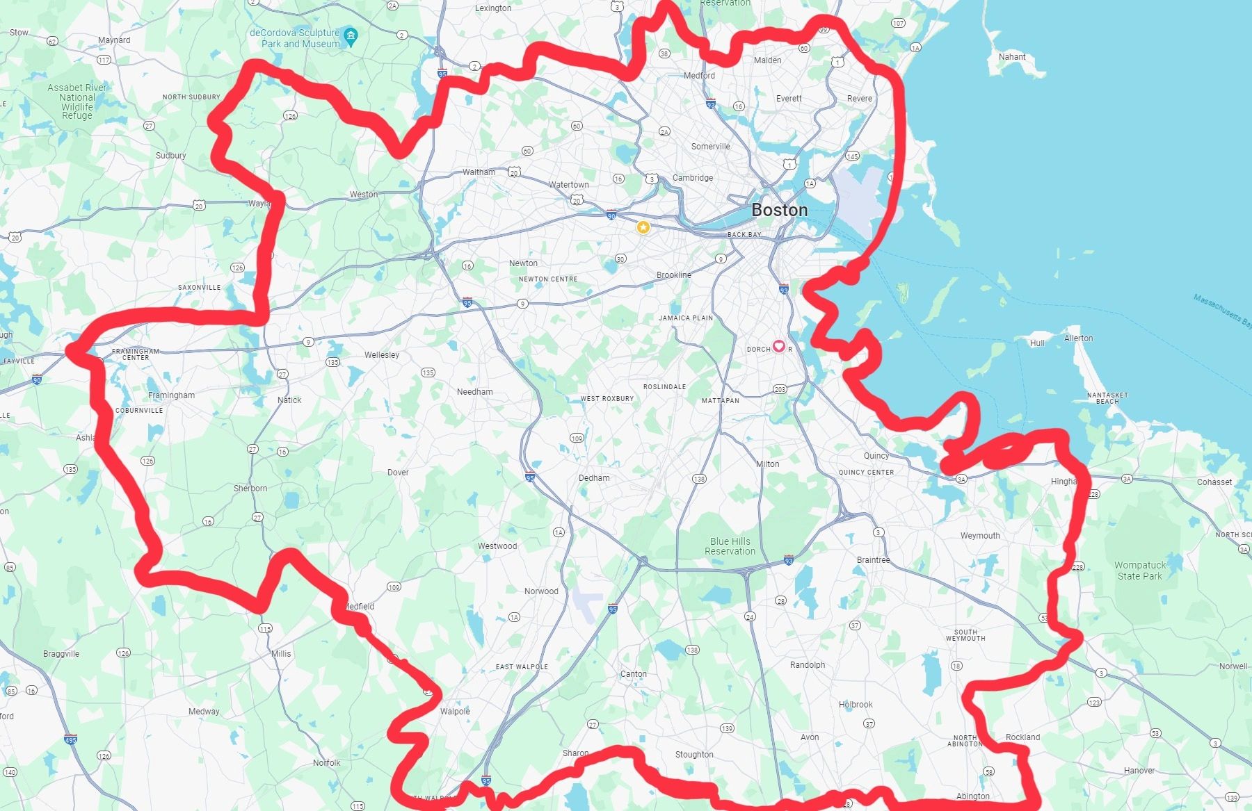 This is a general area of our lowest cost coverage. Need us to go farther? No worry's a small distance fee may be applied based on the location.